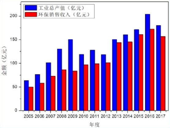 如圖2所示,電除塵行業(yè)集中度較高,13家電除塵主要骨干企業(yè)2005年至2017年的工業(yè)總產值及環(huán)保銷售收入占行業(yè)總產值的60%以上,絕大部分電除塵產品銷往燃煤電廠。2014年超低排放市場啟動后,銷售收入持續(xù)增長,2016年達到頂峰,2017年起出現(xiàn)下降。