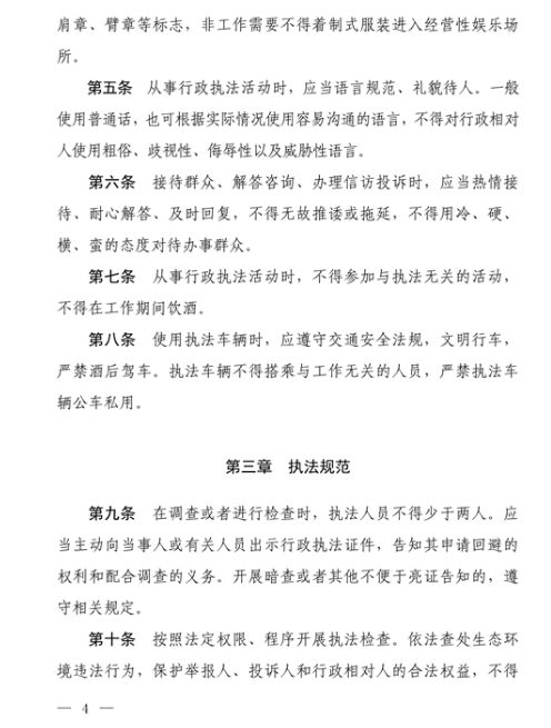 關(guān)于印發(fā)《生態(tài)環(huán)境執(zhí)法人員行為規(guī)范》的通知