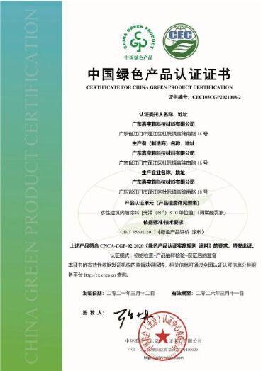 據(jù)了解,CEC(中環(huán)聯(lián)合)根據(jù)國家標(biāo)準(zhǔn)GB/T35602-2017《綠色產(chǎn)品評(píng)價(jià)涂料》和《綠色產(chǎn)品認(rèn)證實(shí)施規(guī)則》的要求對(duì)嘉寶莉藝術(shù)涂料綠標(biāo)認(rèn)證評(píng)審,前述標(biāo)準(zhǔn)也是國內(nèi)首個(gè)對(duì)生物殺傷劑含量(防腐劑)提出明確限量要求的國家標(biāo)準(zhǔn)。2020年12月,經(jīng)國家認(rèn)監(jiān)委正式批準(zhǔn),CEC(中環(huán)聯(lián)合)獲得“中國綠色產(chǎn)品”認(rèn)證資質(zhì),覆蓋家具、涂料、人造板和木質(zhì)地板的《中國綠色產(chǎn)品認(rèn)證》申請(qǐng)和評(píng)價(jià)認(rèn)證。