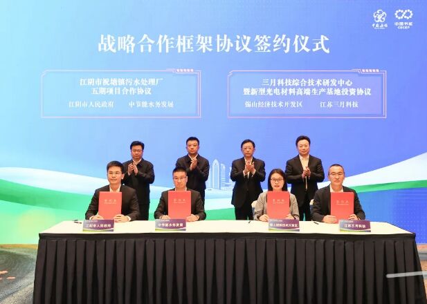 當(dāng)天一批最新合作項(xiàng)目同時(shí)簽約落地:中節(jié)能水務(wù)發(fā)展有限公司和江陰市共同推進(jìn)祝塘鎮(zhèn)污水處理廠五期項(xiàng)目建設(shè);中節(jié)能旗下的江蘇三月科技在錫山區(qū)投資建設(shè)新型光電材料高端技術(shù)研發(fā)中心與高端生產(chǎn)基地;中節(jié)能鐵漢生態(tài)環(huán)境股份有限公司與市環(huán)保集團(tuán),就水源地建設(shè)及保護(hù)、城鎮(zhèn)供水和污水處理、水污染防治、工業(yè)廢水處理、污水資源化等達(dá)成合作意向;中節(jié)能節(jié)能科技東南分公司和無錫移動(dòng)共同打造數(shù)據(jù)機(jī)房與區(qū)域供能相互耦合的示范項(xiàng)目,通過源源不斷的好項(xiàng)目,為無錫經(jīng)濟(jì)社會(huì)發(fā)展注入強(qiáng)勁“綠色動(dòng)能”。