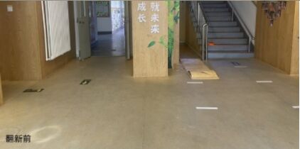 博納專業(yè)人士結合地面實際情況和園方需要,通過打磨深度清潔地板、涂抹色漆、撒屑片和上清漆等步驟,經過一番作業(yè),走廊地面再現(xiàn)其美麗的原始外觀,翻新后的地面也受到師生和家長的一致贊賞。