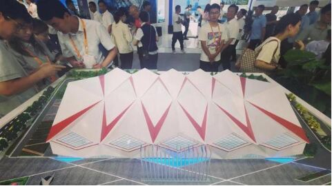 北青報記者在服貿(mào)會北京建工展區(qū)看到,“游泳館”主立面采用紅白相間的折線形設計,視覺上簡潔明快。據(jù)北京建工集團相關負責人介紹,白俄羅斯位于冷溫帶,游泳館在設計時充分考慮當?shù)貧夂蛱卣髋c大型體育場館間歇性運行特點,屋面采用折線形設計,是從白俄羅斯國旗具有民族特色的紅白紋提煉而來,在沒有結(jié)構(gòu)桁架的位置降低建筑高度,從而有效降低建筑能耗;同時,在屋面設置天窗,利用良好的自然采光,還能大幅降低照明能耗。
