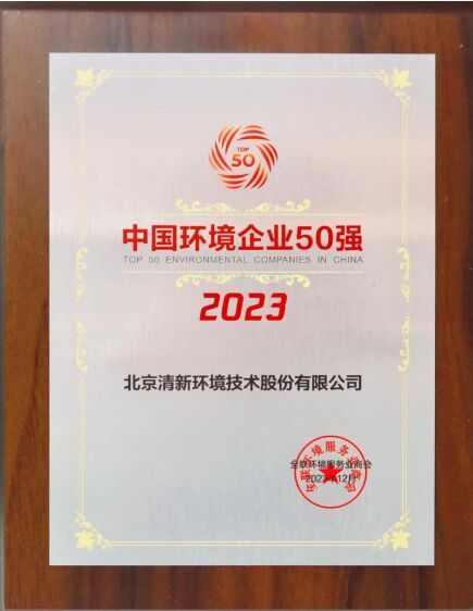 清新環(huán)境入圍“2023中國(guó)環(huán)境企業(yè)50強(qiáng)”榜單