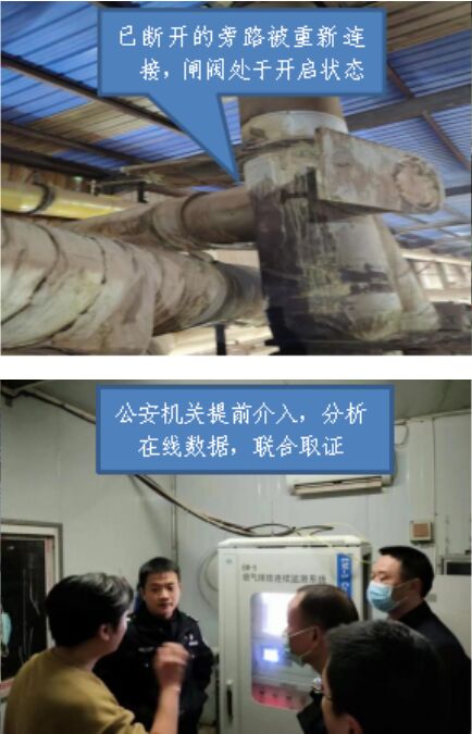 宜昌市生態(tài)環(huán)境局立即行動(dòng),成立執(zhí)法專班,并提請(qǐng)公安機(jī)關(guān)提前介入、聯(lián)合辦案,采取“四不兩直”方式奔赴現(xiàn)場,F(xiàn)場檢查發(fā)現(xiàn),該公司將原本在生態(tài)環(huán)境部門管理要求下已經(jīng)切斷的旁路管線重新封包恢復(fù)使用,并非法設(shè)置三通閘閥,在瓦線生產(chǎn)線干燥及燒成工段的窯爐排氣管道上形成旁路,旁路盲板處于開啟狀態(tài),通往脫硫塔的盲板處于關(guān)閉狀態(tài),旁路廢氣繞過自動(dòng)監(jiān)測設(shè)施直接排放至廠房頂部外環(huán)境。生態(tài)環(huán)境監(jiān)測人員對(duì)該公司瓦線窯爐旁路廢氣排放情況開展監(jiān)測,根據(jù)現(xiàn)場手工監(jiān)測結(jié)果和同一時(shí)間段該公司煙氣脫硫塔在線監(jiān)測結(jié)果對(duì)比分析,設(shè)置旁路后排放的二氧化硫、氮氧化物等未經(jīng)處理,繞過自動(dòng)監(jiān)控設(shè)施監(jiān)控,排放濃度差異大,監(jiān)測數(shù)據(jù)失真,涉嫌通過“旁路排放,逃避自動(dòng)監(jiān)控設(shè)施”篡改監(jiān)測數(shù)據(jù)。