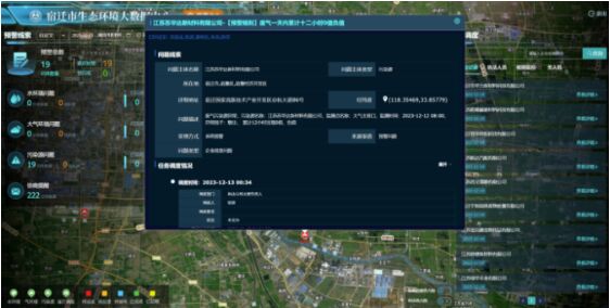 宿遷市向上承接江蘇省生態(tài)環(huán)境智慧監(jiān)管平臺(tái)發(fā)出的預(yù)警任務(wù),依托宿遷市生態(tài)環(huán)境指揮調(diào)度體系,進(jìn)行任務(wù)拆解,向各區(qū)縣派發(fā)、跟蹤、督辦,涉企問(wèn)題,依托企業(yè)“環(huán)保臉譜”直接推送至企業(yè)處理反饋,實(shí)現(xiàn)預(yù)警任務(wù)上通下達(dá)、閉環(huán)流轉(zhuǎn)。