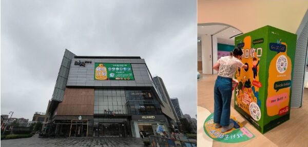 商場內(nèi)外電子大屏、商場內(nèi)水牌、線上小程序都大大地突出了春雨新生的回收塑料瓶做校服的主題傳播。