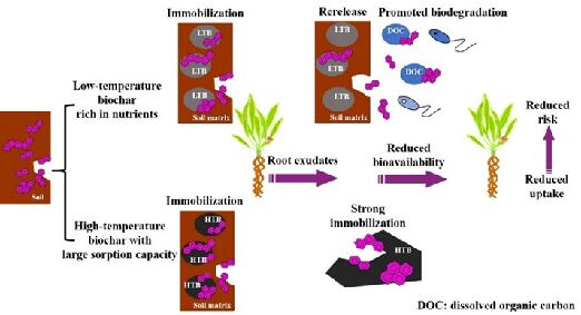 Figure:Diagram of reduced uptake of POPs (taking PAHs as an example) in the rhizosphere amended with bio. Modified from Ni et al. (2018)