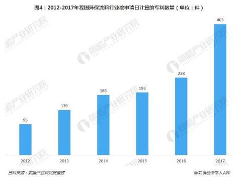 2017年環(huán)保涂料專(zhuān)利數(shù)量顯著上升 目前,我國(guó)節(jié)能減排潛力大,任務(wù)艱巨。2012-2016年,我國(guó)環(huán)保涂料行業(yè)的的專(zhuān)利數(shù)量呈緩慢上升趨勢(shì),而在2016年國(guó)家頒布了一系列相關(guān)政策之后,我國(guó)環(huán)保涂料專(zhuān)利數(shù)量得以快速提升,上升至403件,同比去年增長(zhǎng)69.33%?梢(jiàn),在環(huán)保政策施壓之下,我國(guó)環(huán)保涂料行業(yè)加緊了對(duì)環(huán)保產(chǎn)品研發(fā)的投入。