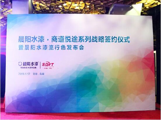 晨陽水漆與商道悅途戰(zhàn)略簽約,不僅是一次互惠互利的強(qiáng)強(qiáng)聯(lián)合,拉動晨陽品牌提升的同時(shí),助力晨陽工程、工業(yè)涂料市場的深耕與拓展,更是一次民族企業(yè)之間戰(zhàn)略協(xié)同,是一次攜手邁向綠色產(chǎn)業(yè)新未來的探索與嘗試,更是商道悅途賦能民族綠色產(chǎn)業(yè),邁進(jìn)歷史發(fā)展新紀(jì)元的嶄新開始。晨陽水漆與商道悅途以本次合作為契機(jī),共同為綠色產(chǎn)業(yè)助力,共同為綠色消費(fèi)呼吁,共同為人類宜居環(huán)境的建設(shè)添磚加瓦,共同助力國家打贏藍(lán)天保衛(wèi)戰(zhàn),迎接水漆新時(shí)代的到來! 除此之外,本次活動還發(fā)布了晨陽色彩2019年度主打色,為行業(yè)設(shè)計(jì)師提供“色彩引領(lǐng)設(shè)計(jì)潮流”的多元視角,用色彩反映時(shí)代,引領(lǐng)消費(fèi)升級。