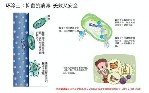 在三月初舉辦的“環(huán)涂士學(xué)校周末刷新服務(wù)和學(xué)校裝飾用健康環(huán)保內(nèi)墻涂料標(biāo)準(zhǔn)倡議會”上,巴斯夫全球副總裁Henry Paeckert介紹說,2003年SARS病毒疫情過后,巴斯夫公司就在高度關(guān)注涂料抗菌抑菌技術(shù)的開發(fā),通過巴斯夫技術(shù)團隊的持續(xù)研究和十七年來的不斷探索,如今這一技術(shù)已成熟穩(wěn)定。我們與都佰城集團共同推出這項成熟的產(chǎn)品,希望能給學(xué)校的學(xué)生們多一道安全保障。 “環(huán)涂士”內(nèi)墻涂料可有效阻隔耐甲氧西林金黃色葡萄球菌(MRSA)、金黃色葡萄球菌(S. AUreus)和大腸桿菌(E Coli)等誘發(fā)皮膚感染、食物中毒、胃腸道疾病的病菌。按照涂料行業(yè)普遍認可的日本工業(yè)標(biāo)準(zhǔn)JIS Z-2801-2000,與普通產(chǎn)品相比,即使用皂液擦洗1萬次,“環(huán)涂士”的漆膜仍然能保持良好的抗菌效力。 孩子們天性喜歡互動觸碰,尤其是幼兒園小朋友和中小學(xué)生,因此交叉感染可能性較大,學(xué)校比較容易發(fā)生流感或手足口病等流行疾病。對此,“環(huán)涂士”的另一項黑科技“抗病毒技術(shù)”對癥下藥,對H7N9流感病毒和柯薩奇病毒(手足口。┱宫F(xiàn)出強大的殺傷力。在抗病毒活性與效力測試中,兩類病毒在24小時后分別減少了99.998%和95.3%。巴斯夫真正將涂料技術(shù)做到極致,“無死角”地保障學(xué)生的身體健康。 目前市場上,不少涂料企業(yè)宣稱自家涂料有殺菌抗菌或者抗病毒的功效,是噱頭還是真實力?事實證明,經(jīng)過嚴苛的實驗室檢測和市場驗證的產(chǎn)品才有說服力。巴斯夫建筑涂料亞太區(qū)市場總監(jiān)容志成表示,“巴斯夫的抗菌與抗病毒技術(shù),核心是將銀離子的載體通過化學(xué)的解決方法,不同于市場上很多產(chǎn)品的物理混合,因此它能很好地解決涂料抗菌的持久性問題,甚至是涂料后期的變色問題。” 新冠肺炎疫情為各行各業(yè)的發(fā)展帶來新的思考,毫無疑問,綠色、環(huán)保、健康將成為未來發(fā)展的主旋律。都伯城集團董事長林凡秋表示,“我們與巴斯夫攜手合作多年,關(guān)注可持續(xù)發(fā)展的綠色校園建設(shè)升級模式,致力于營造健康可持續(xù)的綠色校園發(fā)展氛圍。繼DPU環(huán)保耐久學(xué)校專用塑膠跑道系統(tǒng)之后,環(huán)涂士的推出將為特殊時期的學(xué)校安全建設(shè)提供進一步保障!