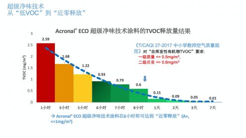 人的一生中,約有90%的時間在室內(nèi),室內(nèi)空氣質(zhì)量的優(yōu)劣,極大地影響著我們的健康與安全。世界衛(wèi)生組織研究表明,室內(nèi)空氣的污染程度比室外高2-5倍。而處于身體發(fā)育階段的學(xué)生,對室內(nèi)空氣更為敏感,如何確保他們的呼吸健康?都佰城作為創(chuàng)新未來應(yīng)用的技術(shù)驅(qū)動型公司和全球最大化學(xué)品公司巴斯夫,針對校園環(huán)境和學(xué)生這一特殊群體研發(fā)出功能強大的健康環(huán)保的水性內(nèi)墻涂料“環(huán)涂士”。 據(jù)介紹,“環(huán)涂士”包含五大技術(shù),超凈味技術(shù)實現(xiàn)涂料施工后1小時內(nèi)入;“零”釋放技術(shù)將有害VOC降至最低;耐污漬技術(shù)讓維護除漬更便捷;甲醛凈化技術(shù)可有效去除有害游離甲醛。此外,環(huán)涂士還將技術(shù)進一步升級,讓抗菌抑菌甚至抗病毒性能成為教室內(nèi)墻涂料的新“本領(lǐng)”。