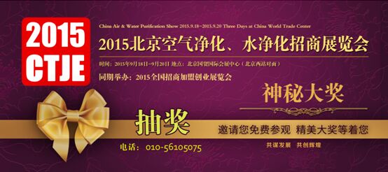 為了活躍經(jīng)濟,鼓勵創(chuàng)業(yè)加盟,鼓勵小規(guī)模投資,大力發(fā)展加盟連鎖招商產(chǎn)業(yè),2015第六屆中國空氣凈化水凈化及環(huán)保家電招商加盟展覽會即將于9月18日到20日在北京國貿(mào)國際展覽中心隆重舉辦。本次大會主要針對空氣凈化和凈水行業(yè)為廠家提供最佳的合作交流機會,系列大會被公認(rèn)為行業(yè)廠家最佳招商平臺。屆時將有來自全國各地的百余種最新技術(shù)及產(chǎn)品現(xiàn)場展示和銷售。大部分產(chǎn)品都是行業(yè)頂尖企業(yè)的最新創(chuàng)作,在以往產(chǎn)品的基礎(chǔ)上進(jìn)行了革新和更新,值得期待,值得參觀。 大會即將于明日的早上9點開始對外免費開放。有意參觀的朋友可以持名片現(xiàn)場換取參觀證入場參觀,沒名片的朋友可以通過現(xiàn)場登記后入場免費參觀,整個參觀過程無需任何費用。持名片的朋友可參加現(xiàn)場抽獎活動,獎品價值高達(dá)50萬。
