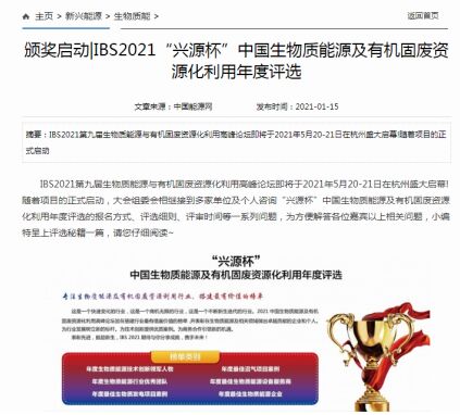 IBS2021“興源杯”中國生物質(zhì)能源及有機固廢資源化利用年度評選線上評選通道即將開啟!